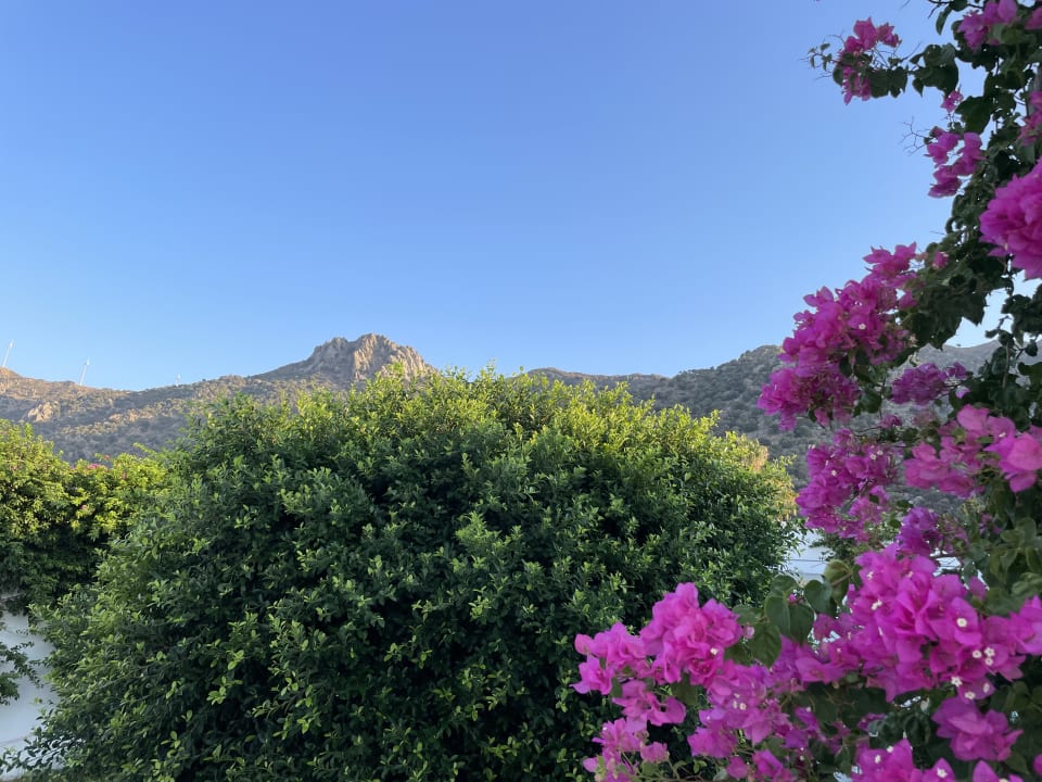 Seitlicher Blick aus dem Bungalowzimmer