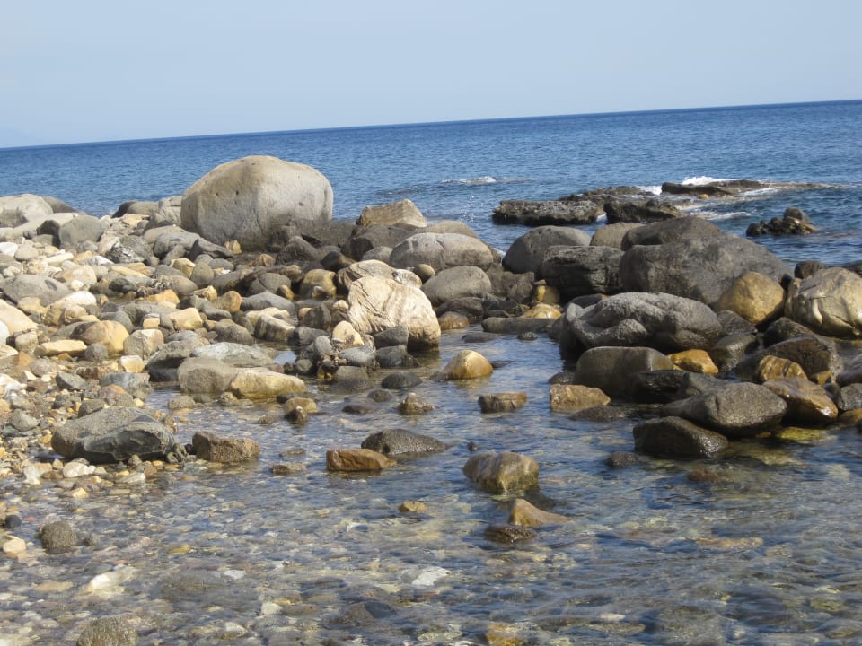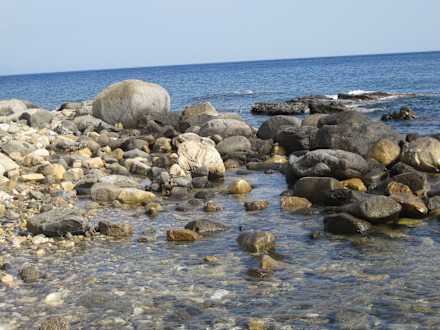 Am Rande seitlich vom Kieselstrand.