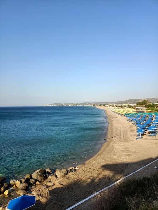 Ausblick auf den Kiesstrand. Liegen sind hier kostenfrei.