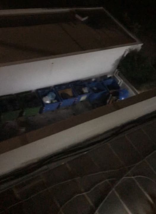 Blick (laut Hotel: Gartenblick...🤣) vom Balkon auf die Mülltonnen