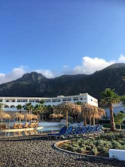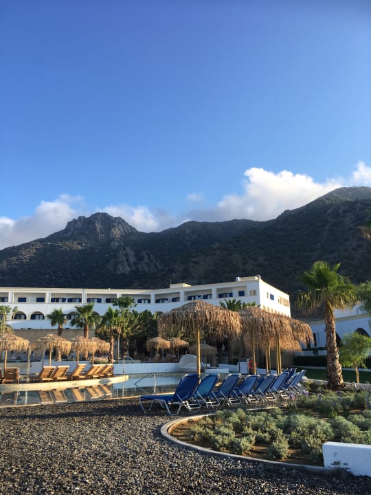 Blick aufs Hotel und die Berge.