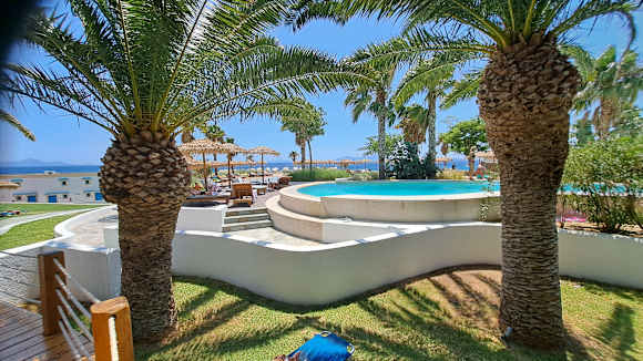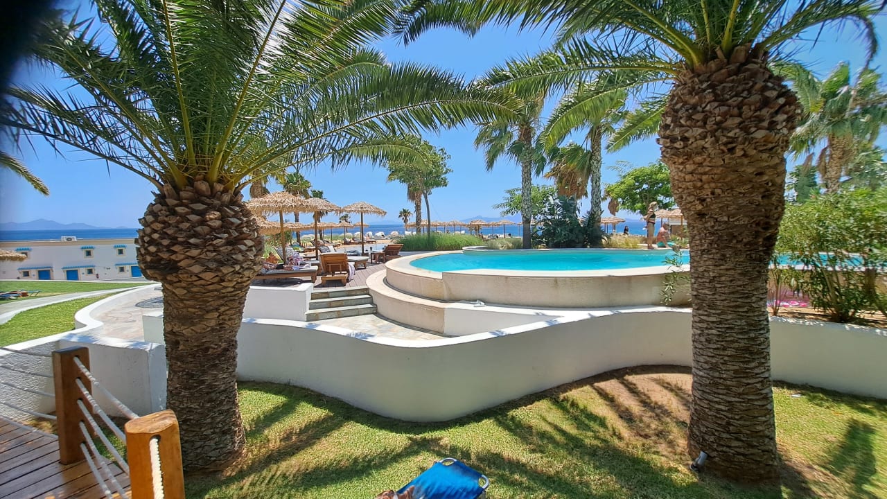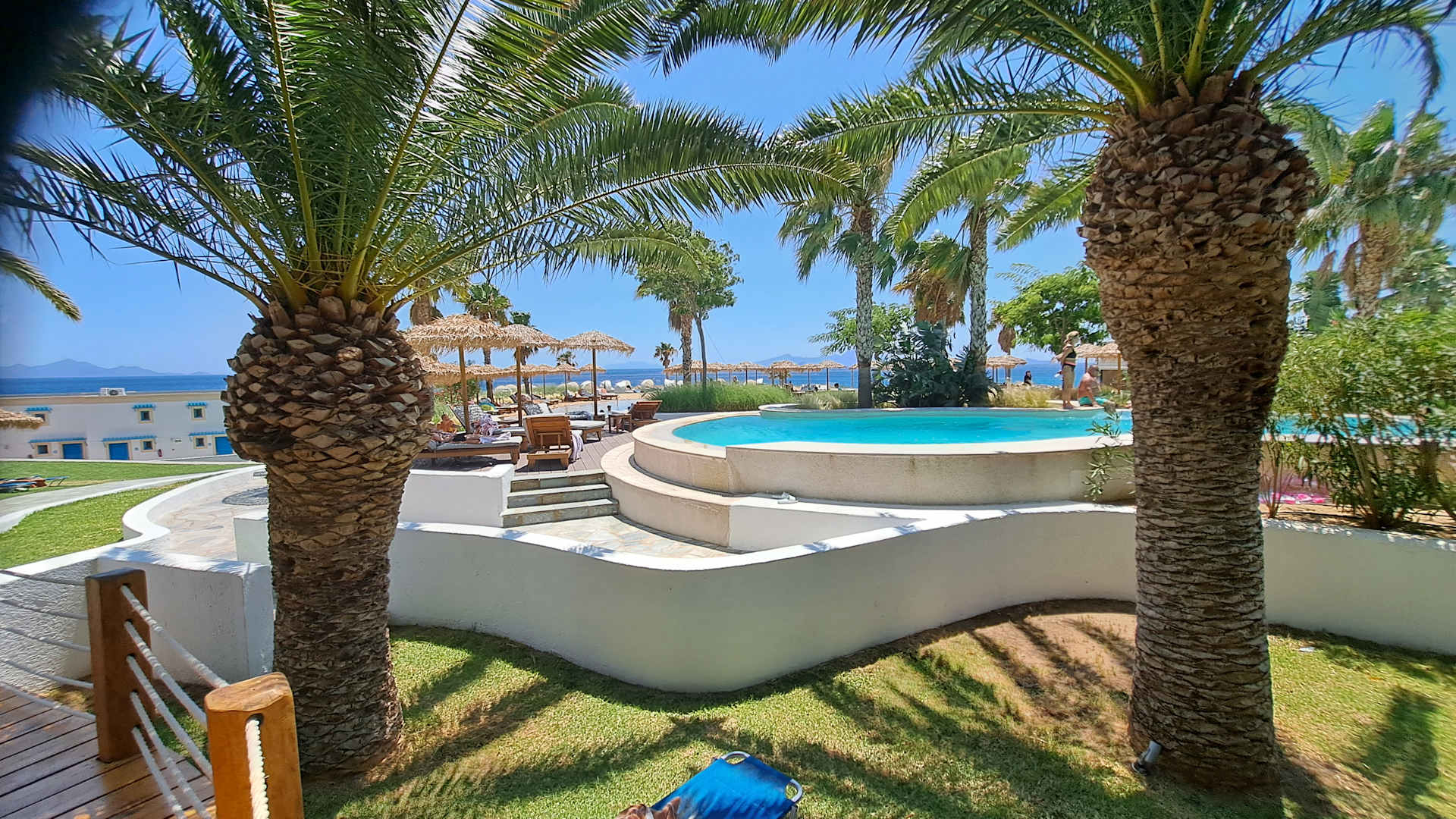 Blick auf den großzügig gestalteten, sauberen Poolbereich
