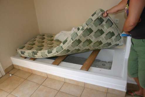 Les sommiers contitués de planches de récupération de palettes de palettes de chantier
