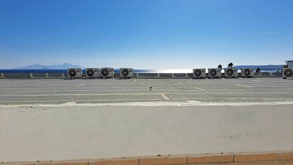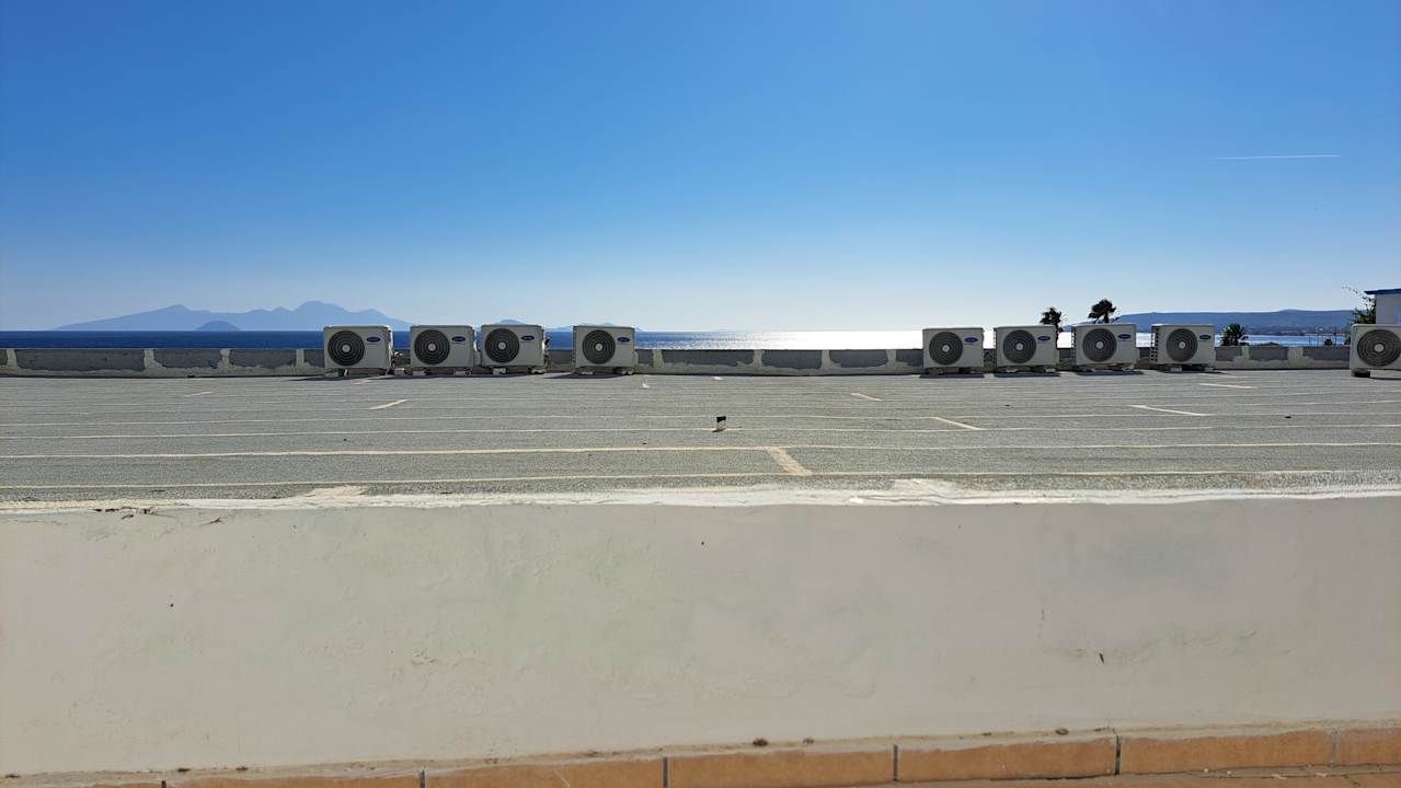 "Blick"vom Balkon, eigentlich eine bodenlose Frechheit, so etwas überhaupt zu bauen, wenn das nächste Haus etwas tiefer gebaut gewesen wäre, hätte man einen tollen Ausblick haben können, so leider nur das Dach und Mauer