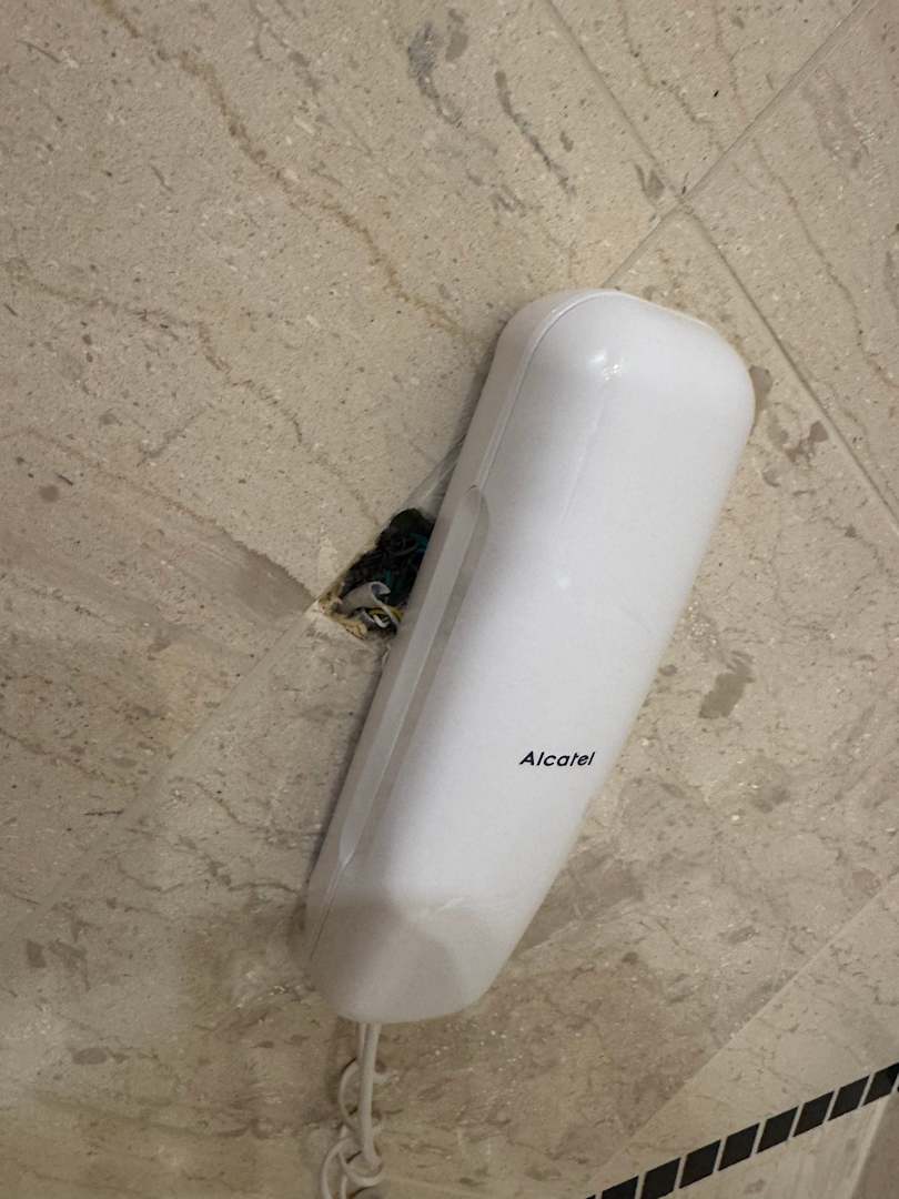 Telefon fällt fast von der Wand.