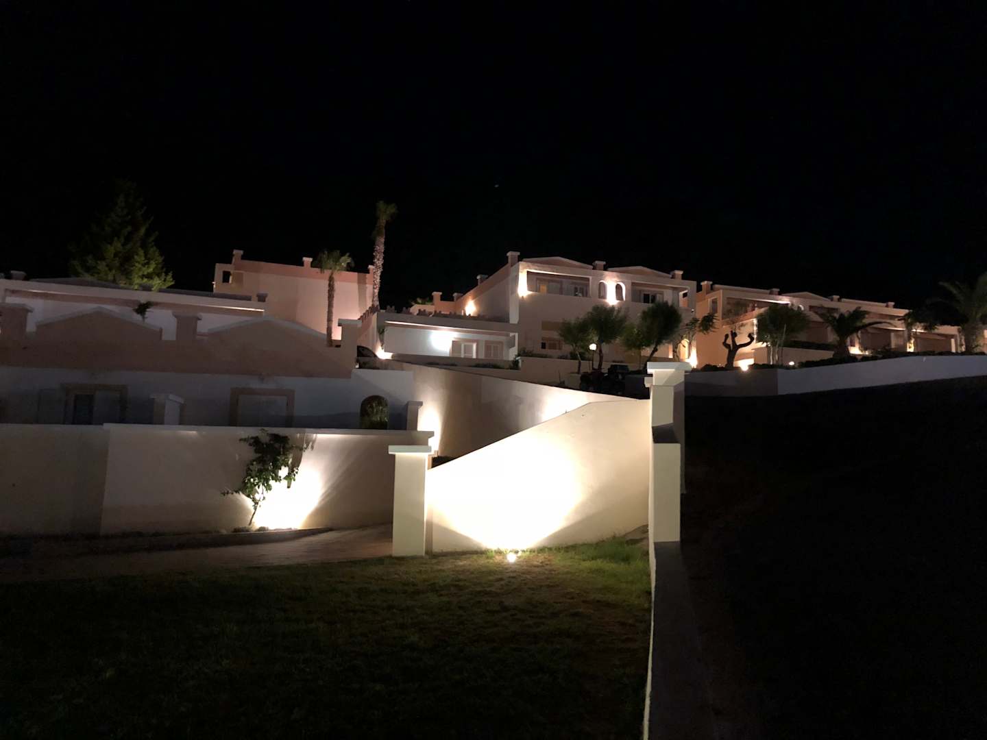 Obere Hotelanlage bei Nacht
