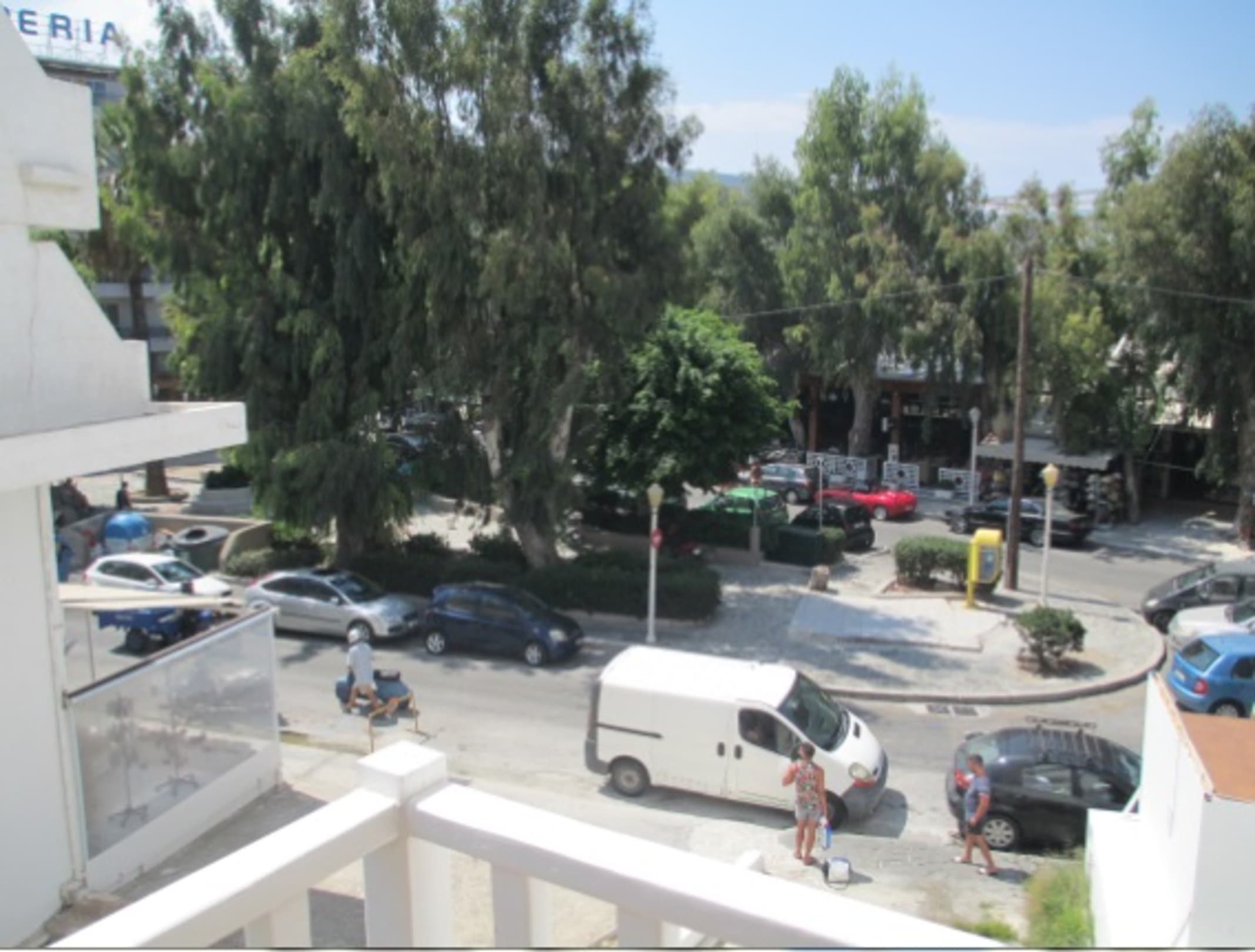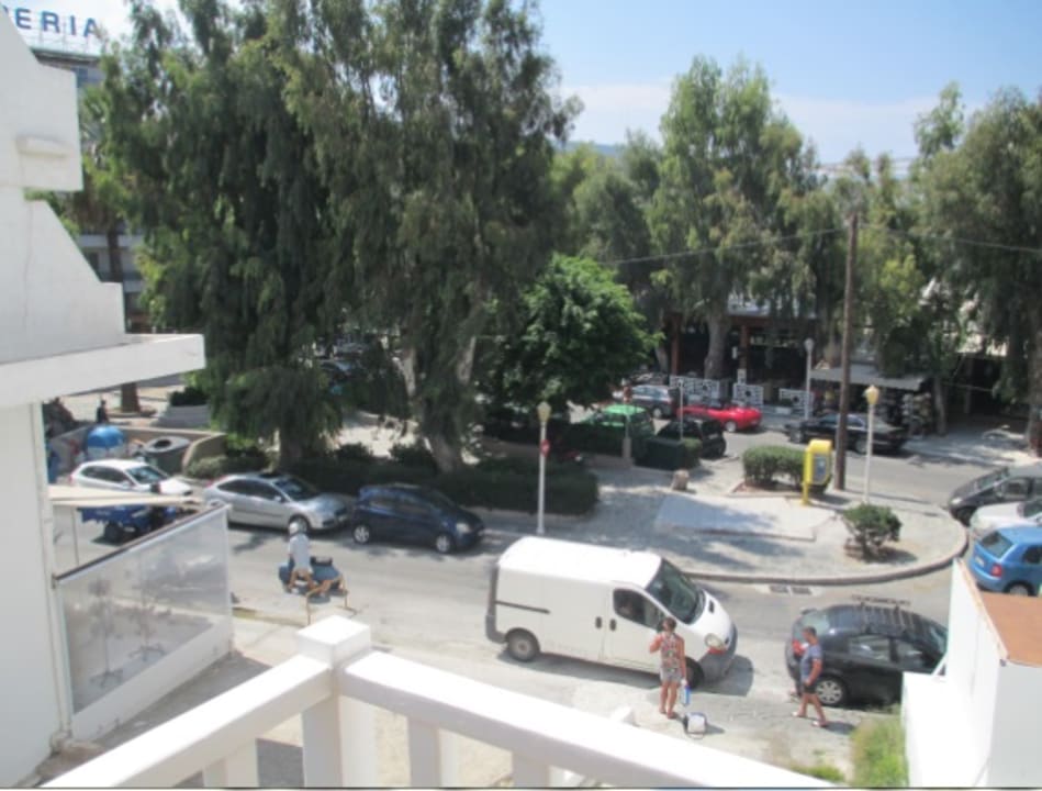 Blick vom Balkon rechts zur Straße, seitliches Zimmer.