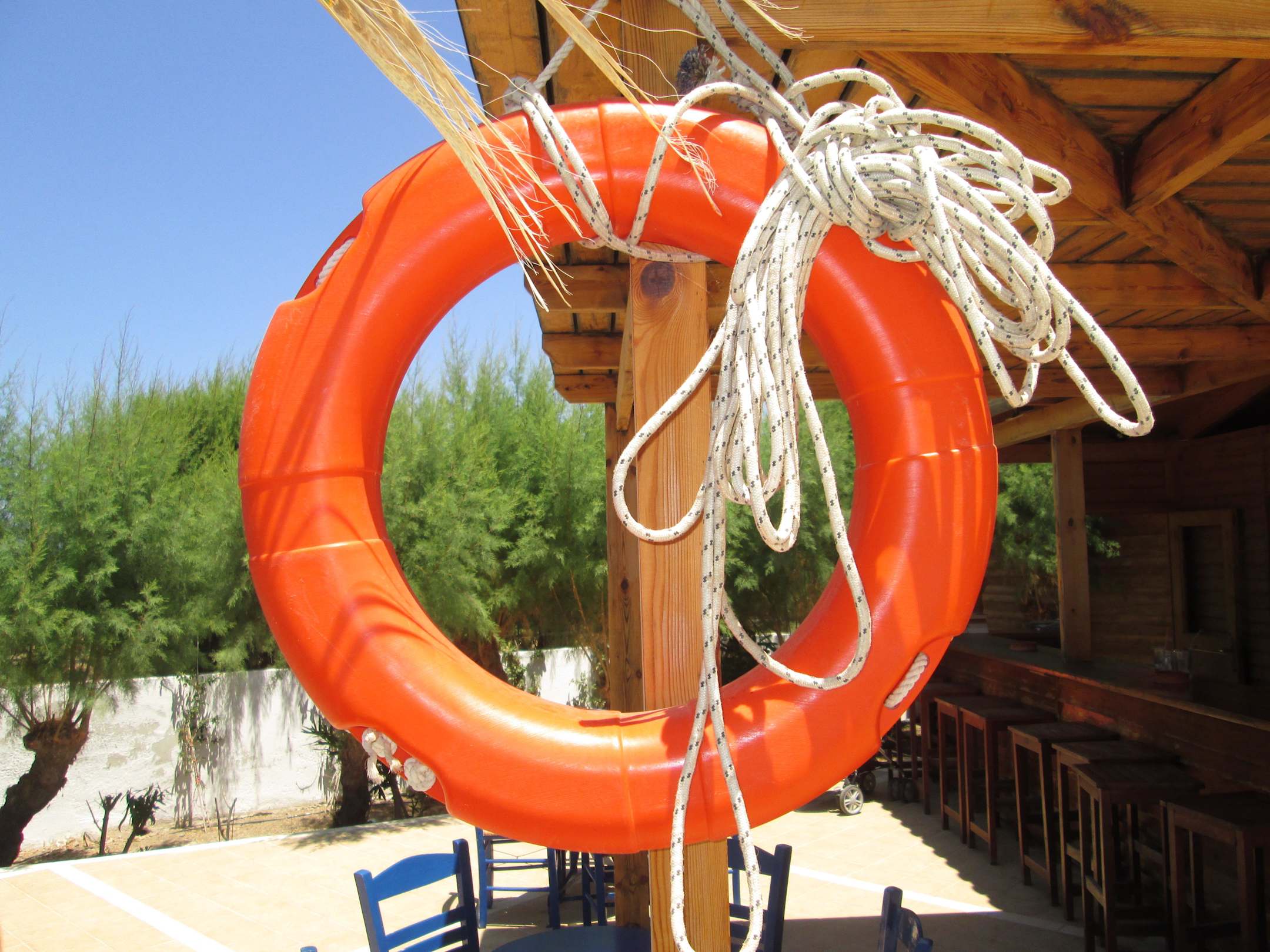An den beiden Pools wird Sicherheit groß geschrieben. Es sind ausreichend Rettungsringe vorhanden. Dieses Bild ist an der Bar des kleinen Pool aufgenommen.