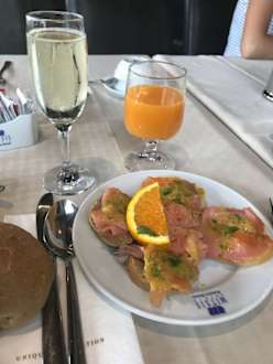 GastroFrühstück Lachshäppchen,Prosecco und frisch gepresster Orangensaft