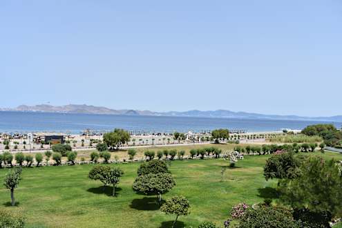 AusblickBlick aus dem Zimmer auf den eigenen Strandabschnitt. Im Vordergrund ein Teil der Außenanlage.
