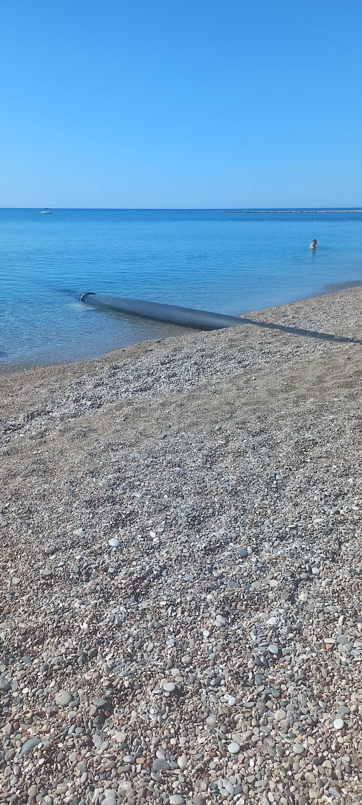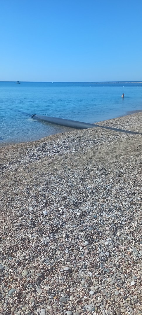 Rohr von der Kläranlage, dass ins Meer geht, daneben baden Gäste. 5 Sterne Hotel?