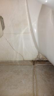 kaputte Fliesen. Schmutz unterm Toilettenbecken