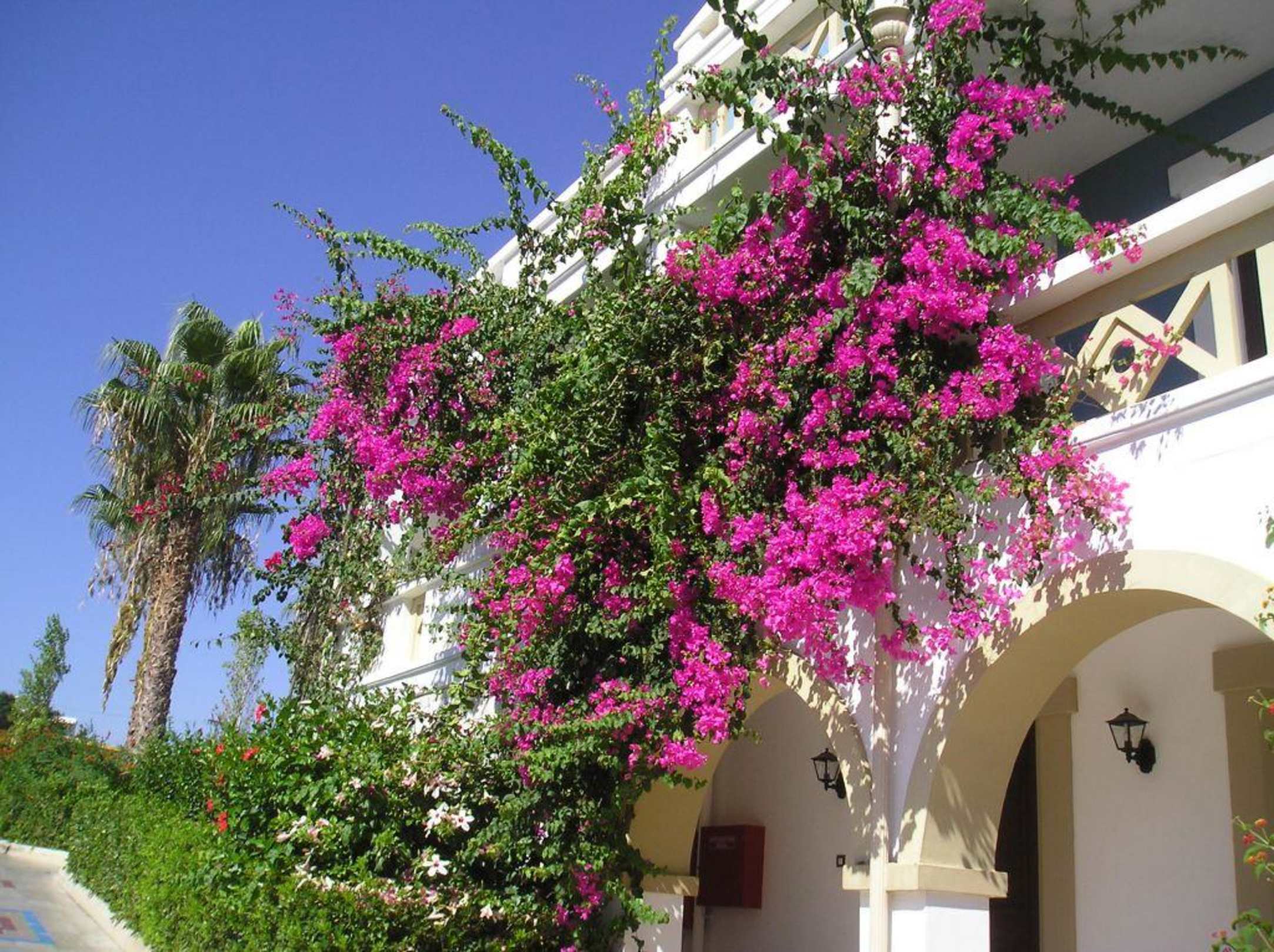 Überall in der Anlage findet man Bogain Villeas, Hibiskus und Co