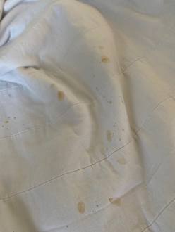Überdecke mit Kot beschmiert
