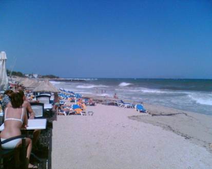 KieselstrandNicht gerade feinkörniger Kiesel wurde bis 5 Meter ins Meer aufgeschüttet - dann steiniger Untergrund