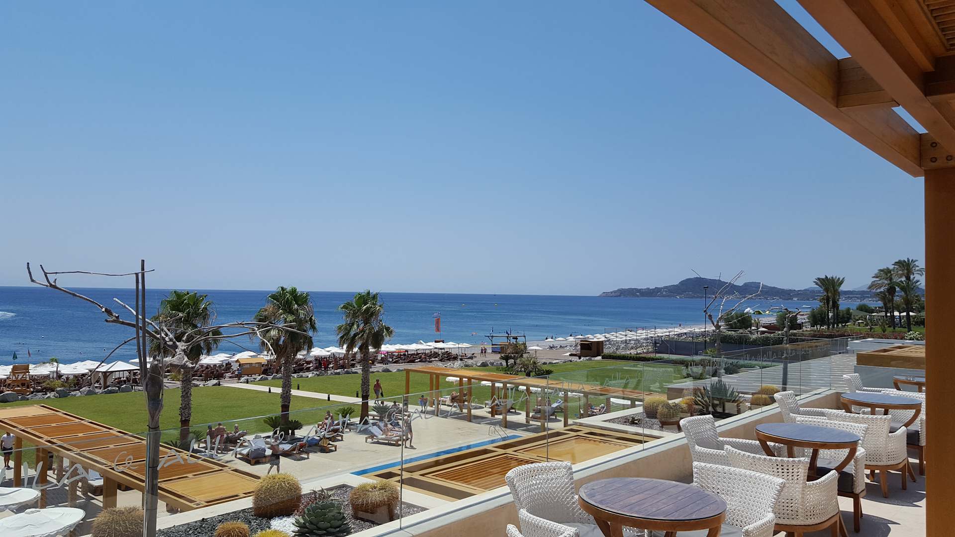 Blick auf Grünanlagen und Strand