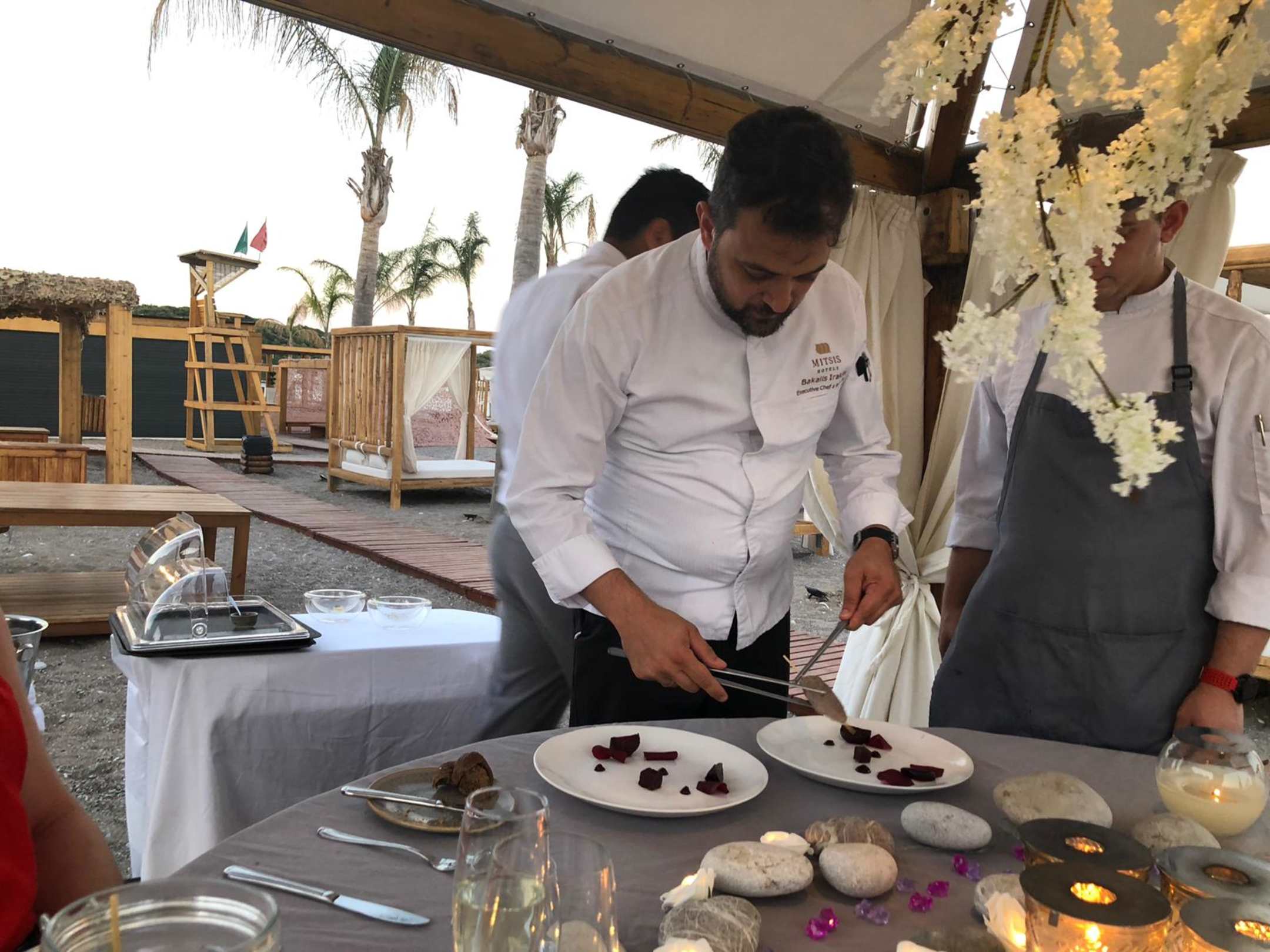 GastroBeim Beach-Dinner serviert der Executive-Chef selbst. In diesem Fall eine 12stündig geräucherte Ente in Lavendel mit Schokoladensosse.
