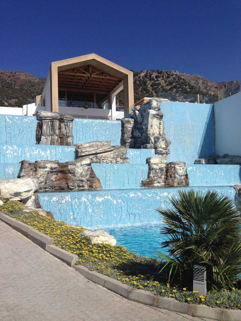Główny budynek hotelu wraz z wodospadem