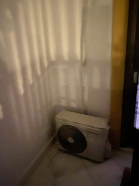 Das unerträgliche Klimagerät auf dem Balkon: - es war sehr laut - hat den ganzen Balkon brutal erhitzt - hat den halben Balkon unter Wasser gesetzt