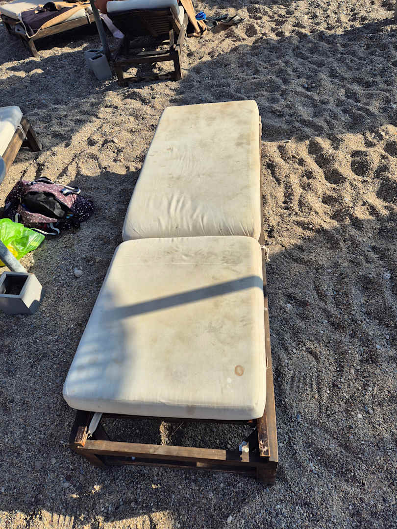 Schmutzige eher eklige Liegen am Strand,
