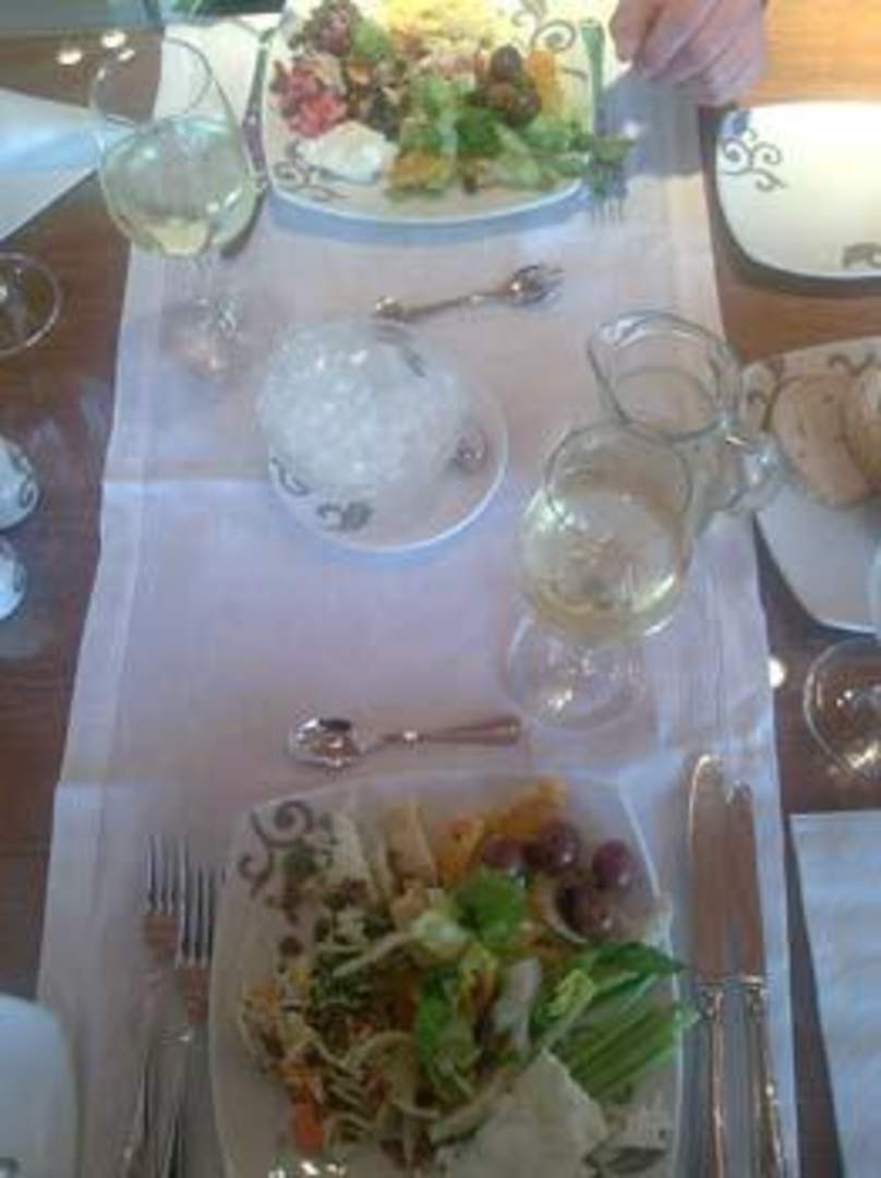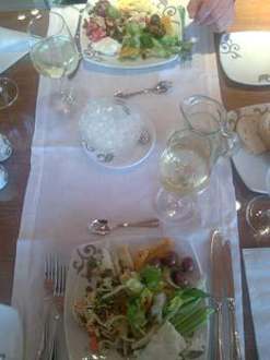 Tisch im HauptrestaurantTisch im Hauptrestaurant, gut eingedeckt, der einzige Platz (LEIDER) mit guten Weingläsern