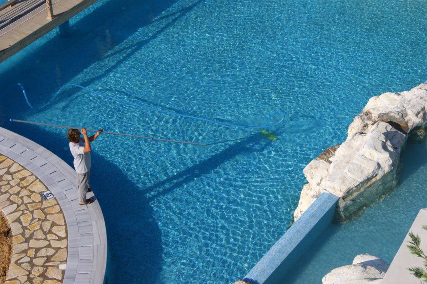 Mit moderner Staubsaugertechnik ist der Pool ruckzuck sauber.