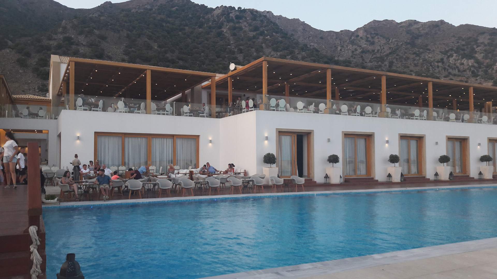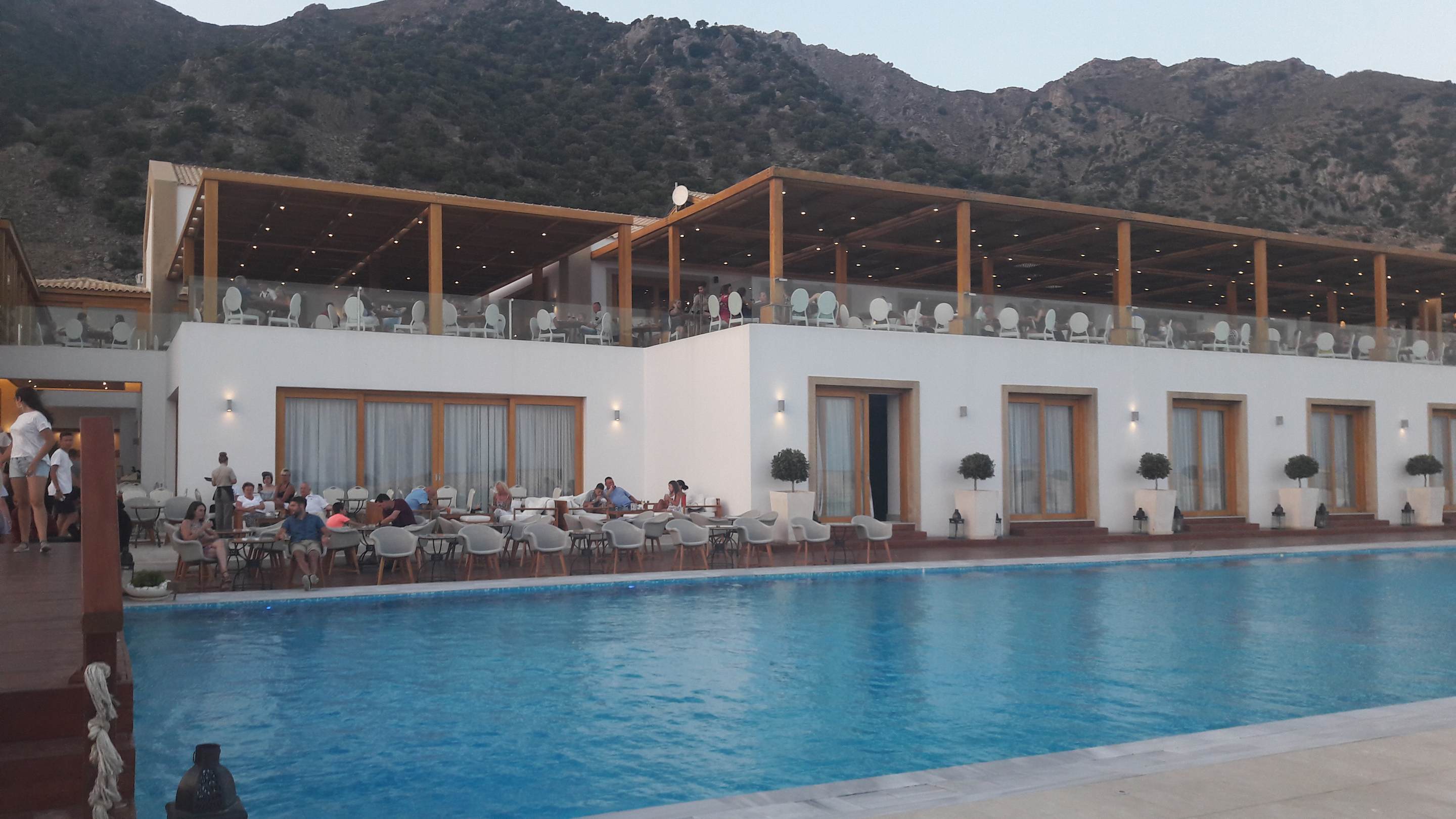 Blick auf den oberen Speisesaal und Sitzgelegenheiten für den Abend an der Bar.