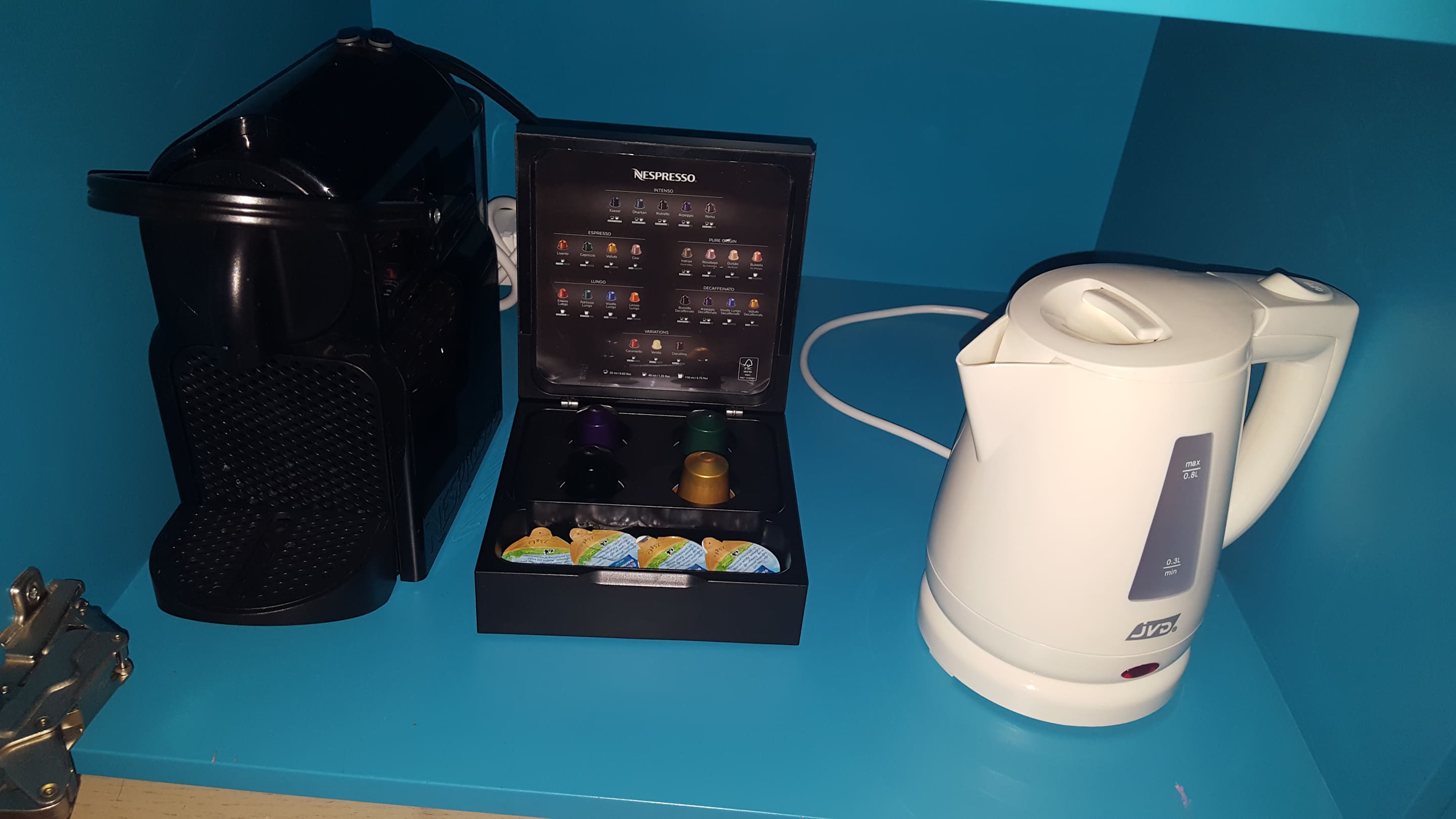 im Schrank versteckt...keine Steckdose in der Nähe...!