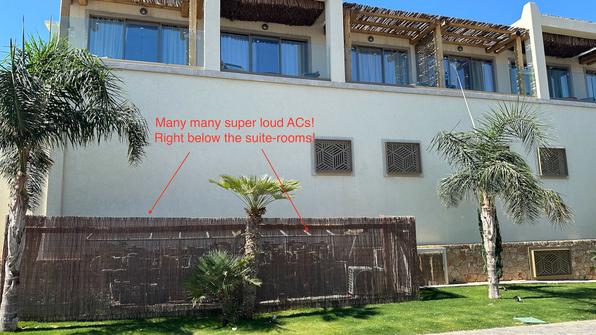 ZimmerSuper Loud ACs right below the expensive suites. Above you can see our suite and the suite next door. Super loud, all day and night.