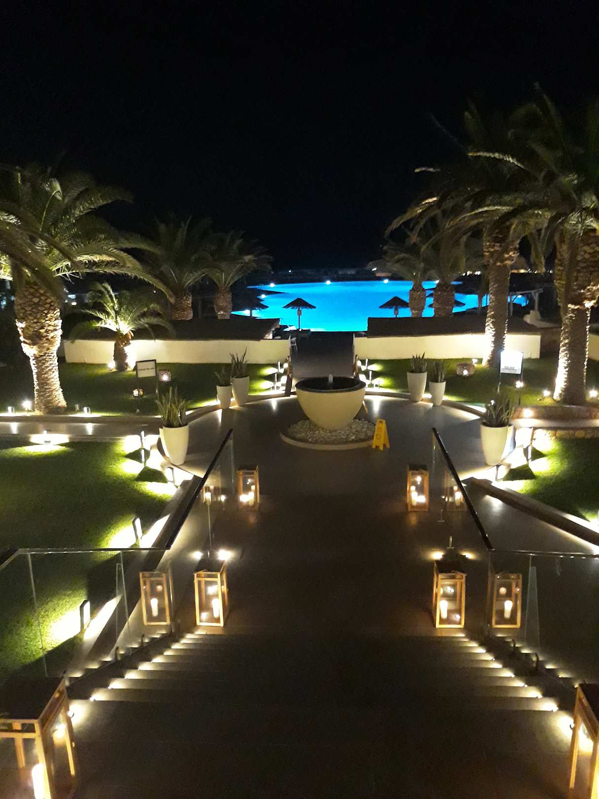 Abendlicher Blick auf die Anlage zum Hauptpool