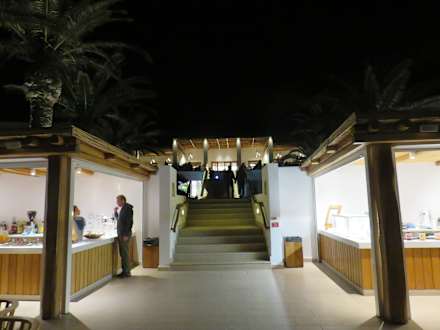 linke Seite am Hauptpool Getränke, rechte Seite Crepes, Sandwiches u.a.