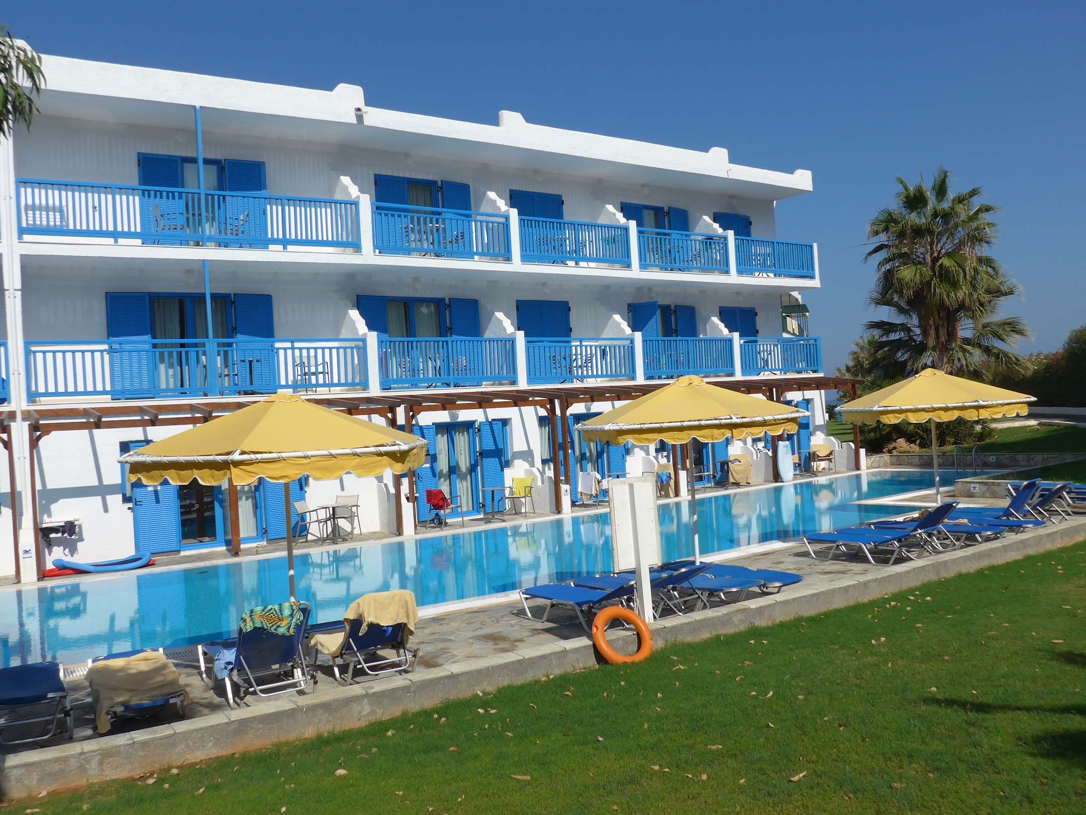 AußenansichtAußenansicht des Blockes rechts vom Eingang, die unteren Zimmer haben direkten Zugang zum Pool
