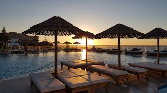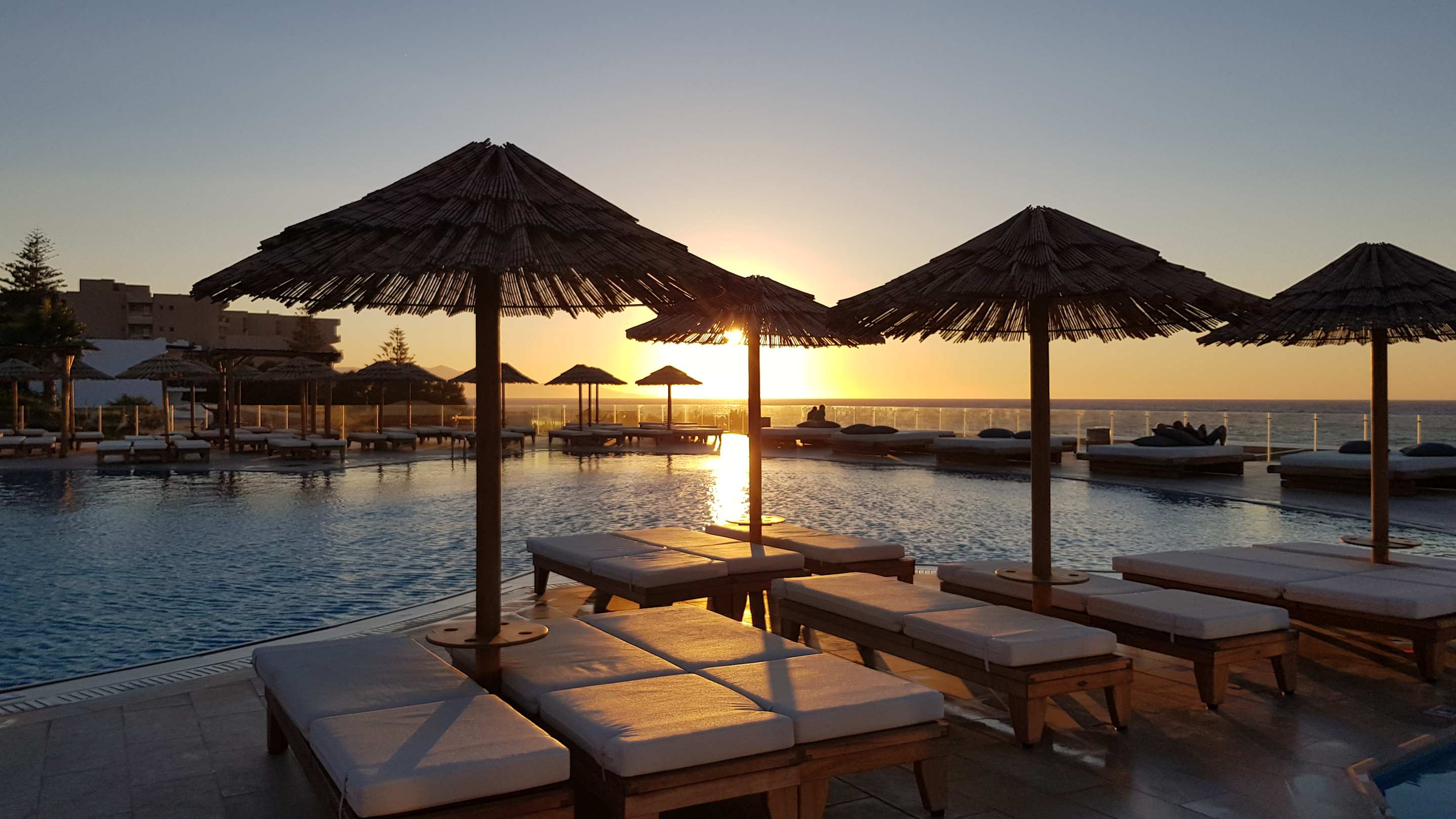 Sonnenuntergang beim Pool