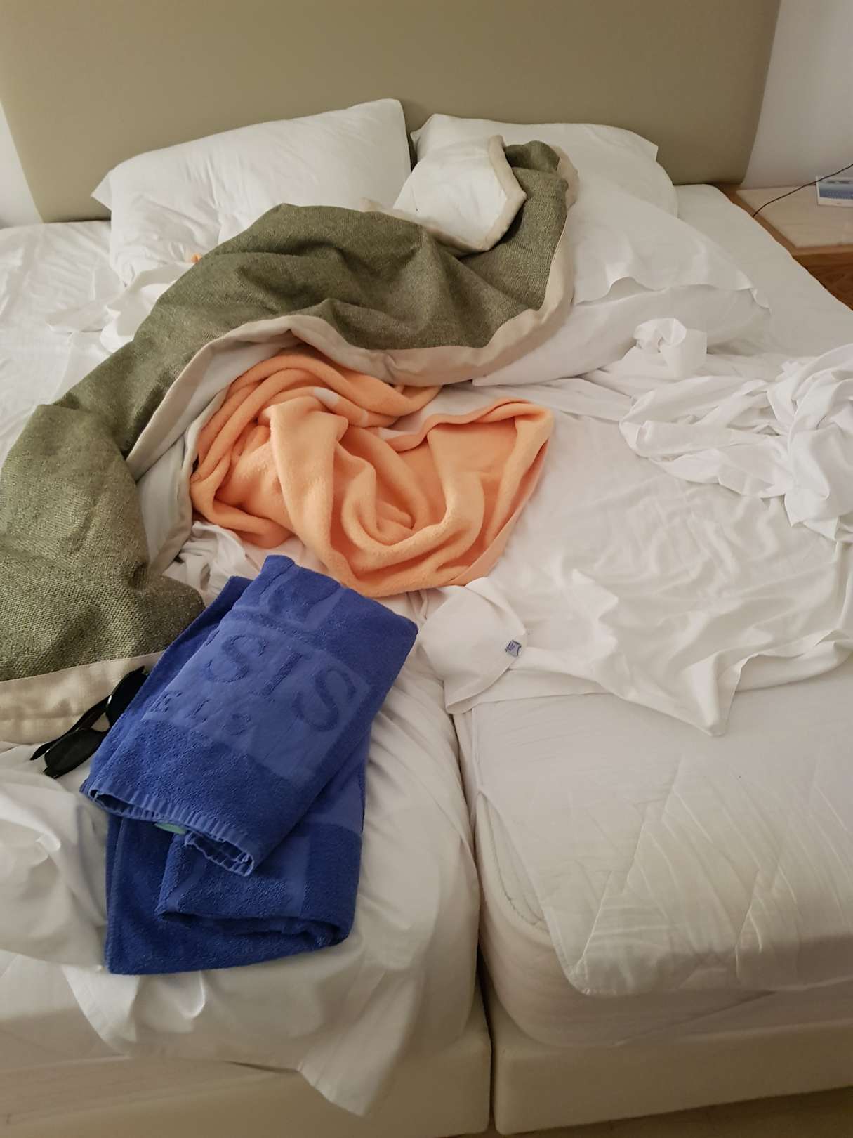 Alle Zimmer haben nur zwei Einzelbetten, keine Bettdecken und sind ekelhaft