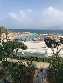 Blick von der Frühstücksterrasse über den Pool zum Meer ,einfach traumhaft