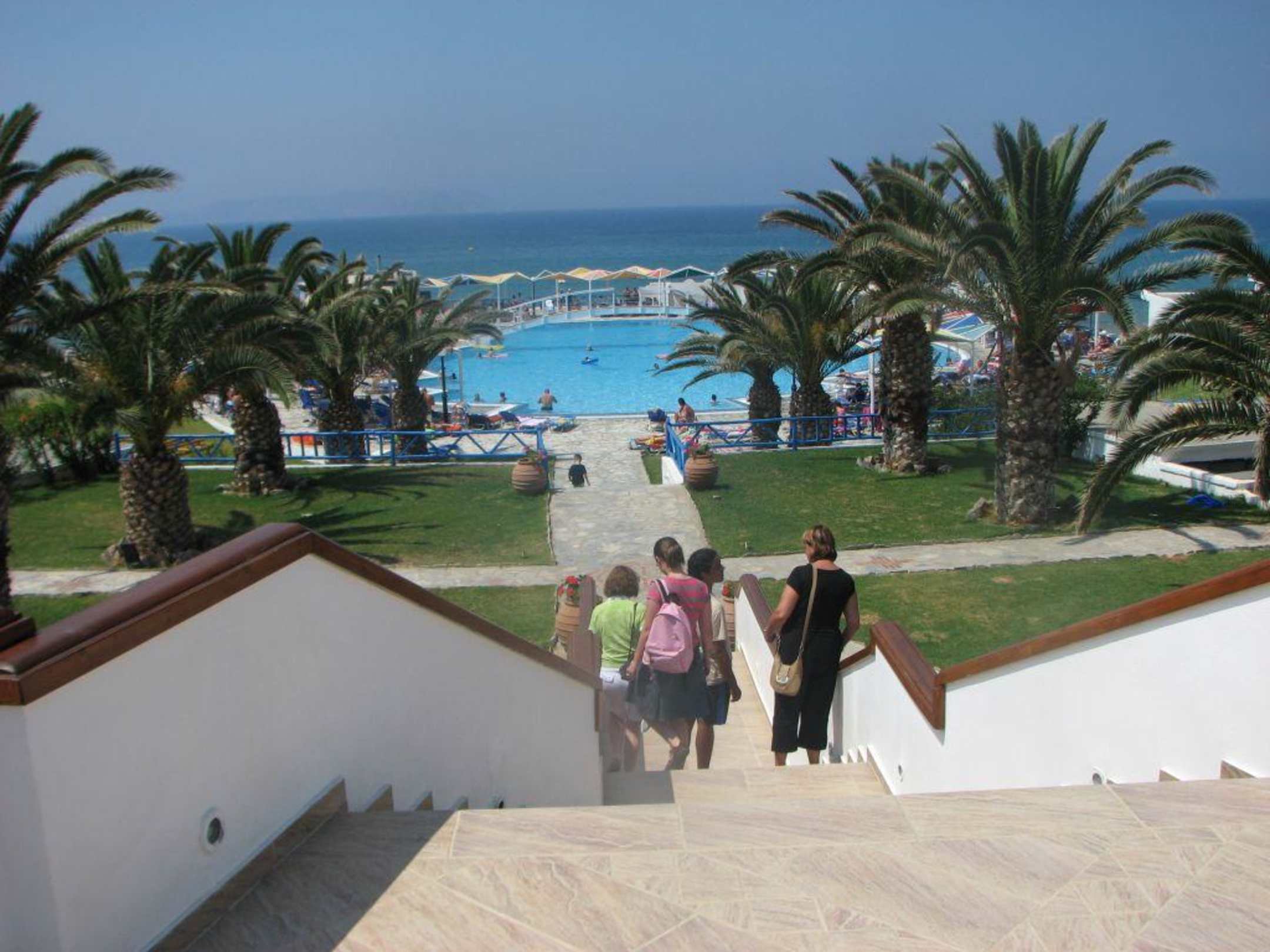 Widok z tarasu restauracyjnego na basen i morze