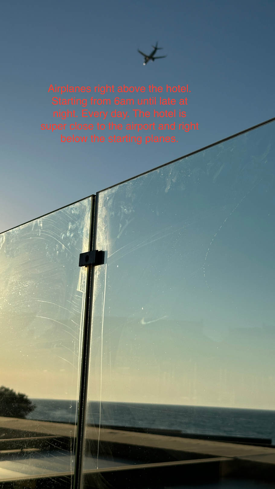 Loud airplanes all day above the hotel. Hotel is super close to the airport.
