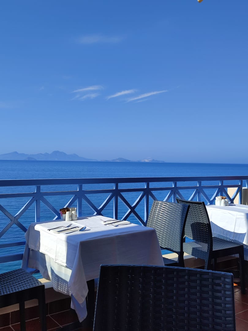 Blick beim Frühstück auf die Ägäis