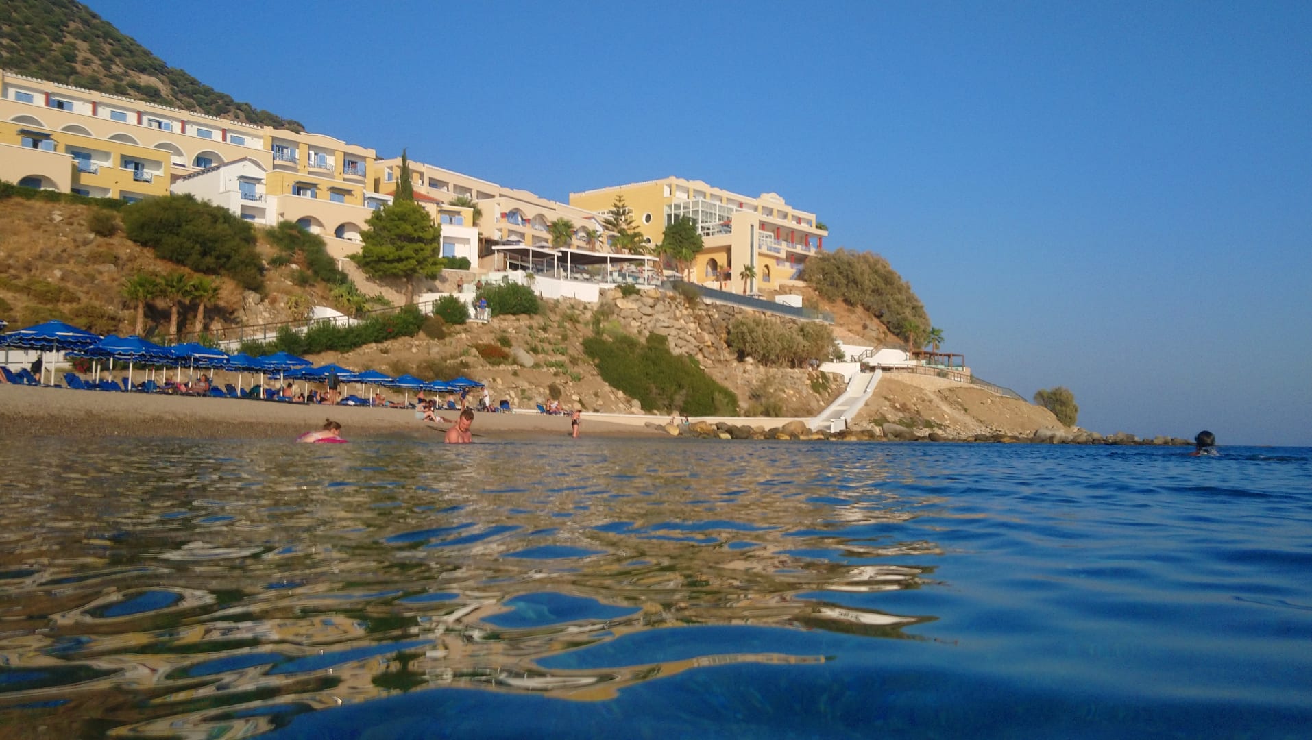 Blick aus dem Meer auf die Hotelanlage