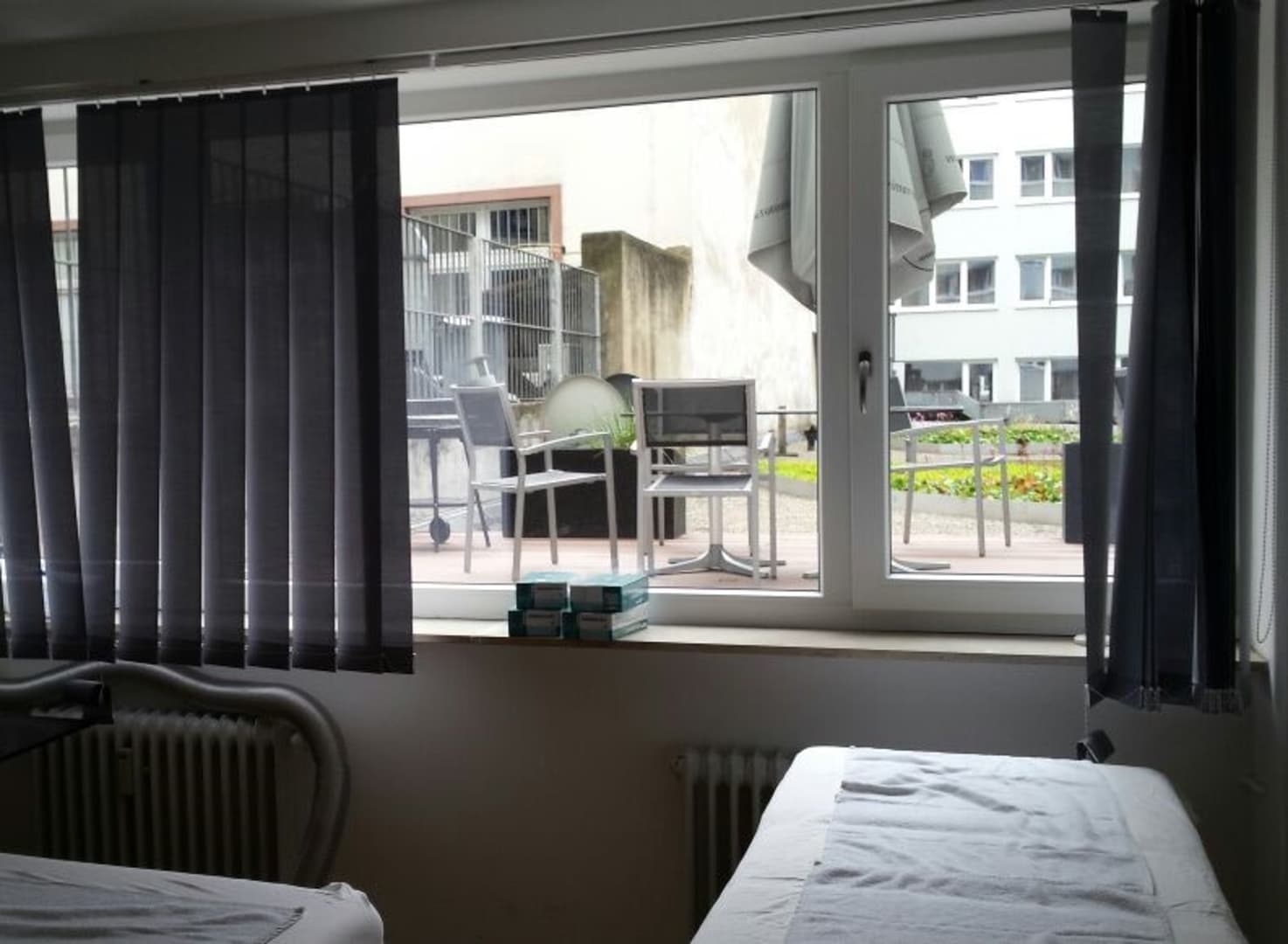 Schulungsraum. Bei Buchung wurde ausdrücklich hingewiesen, dass er nicht einsehbar sein darf. Leider war der Lamellenvorhang aber abgerissen und trotz mehrmaliger Aufforderung wurde nicht repariert.