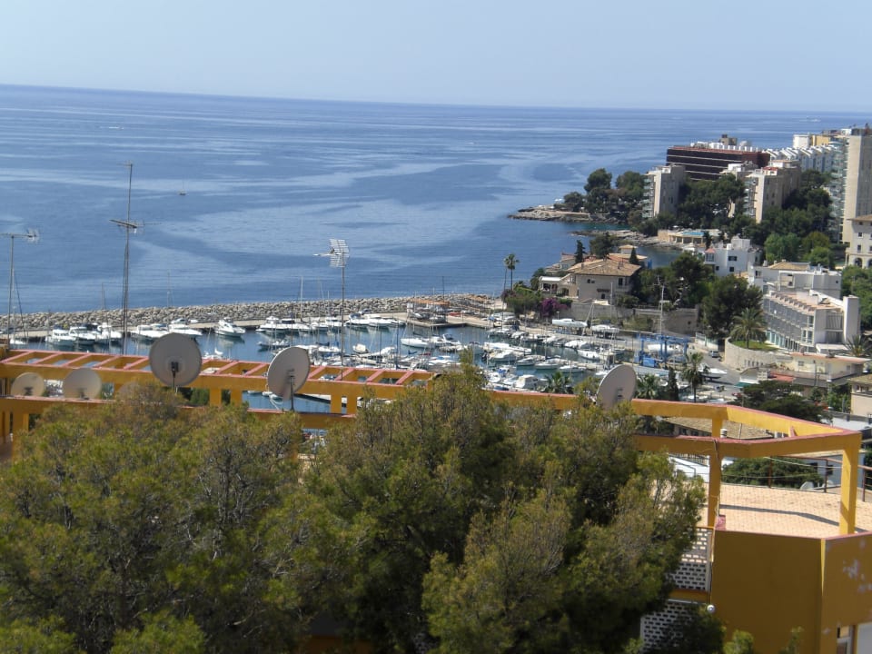 Zimmerausblick aufs Meer und den kleinen Hafen