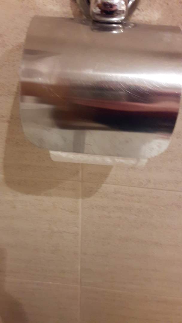 Total dreckiger Toilettenpapierhalter.