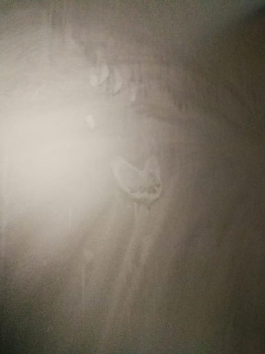 Handabdruck und Geschmiere an der defekten Tür