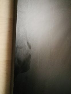 Handabdruck und Geschmiere an der defekten Tür