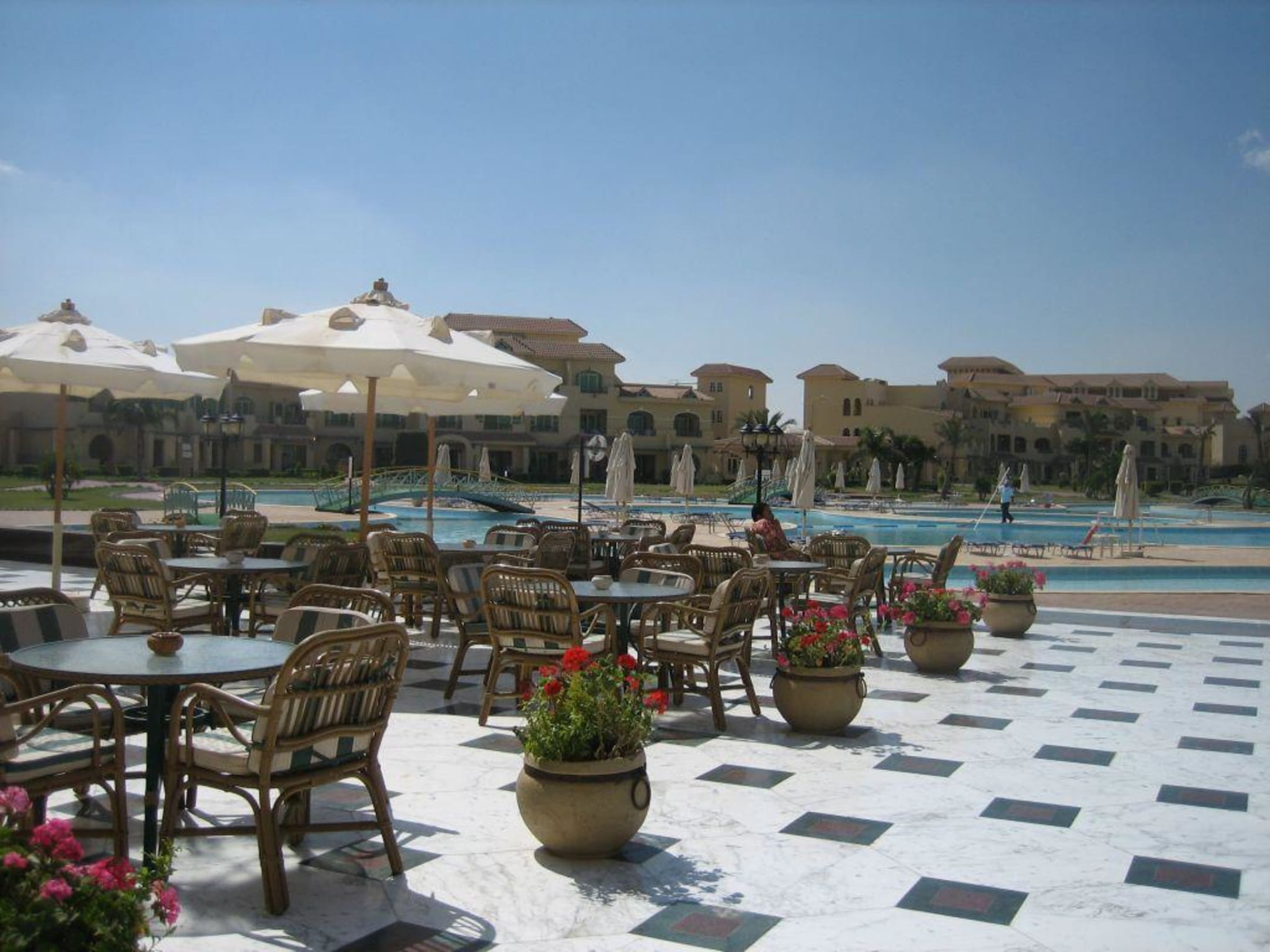 Terrasse und Pool mit Blick zu den Zimmern Mövenpick Hotel Cairo Media City