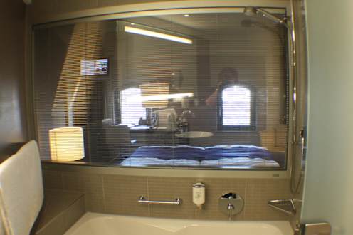 Blick aus dem Bad in das Zimmer 1010