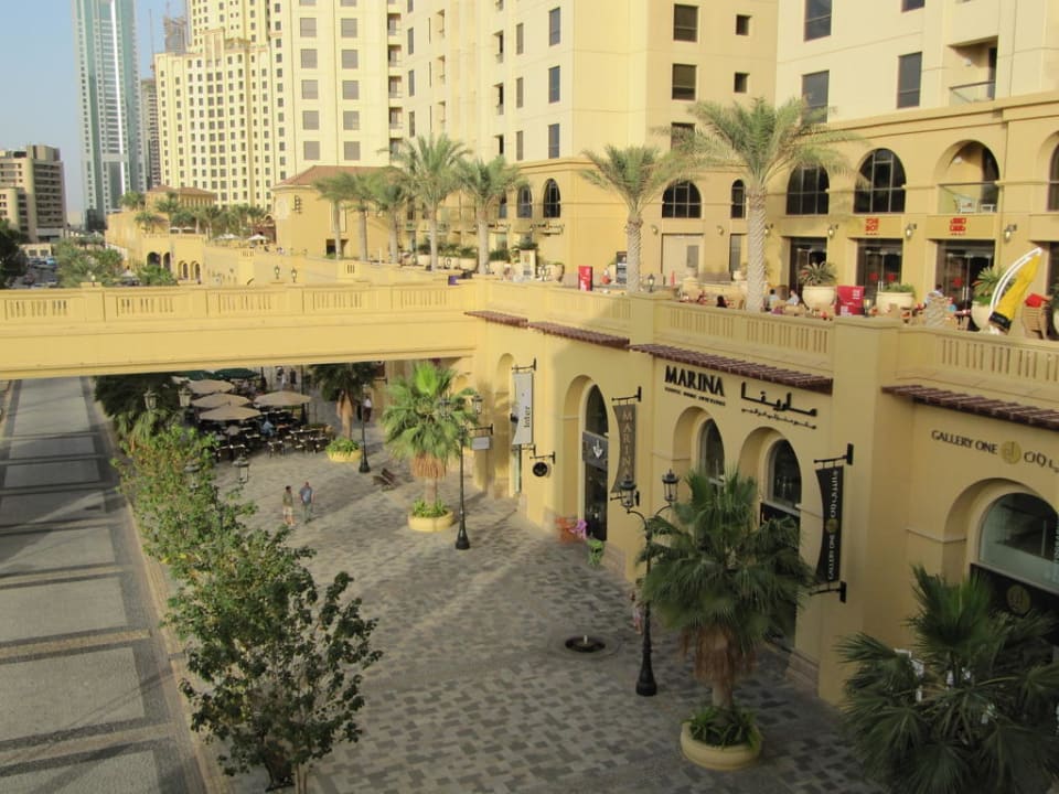 Blick vom Hotelpool auf die Flaniermeile "The Walk".