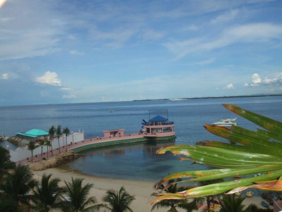 Blick auf den Strand vom HotelzimmerIm Hintergrund ist die Bar "Manny O´s" zu erkennen, die zu dem Hilton Komplex gehört.