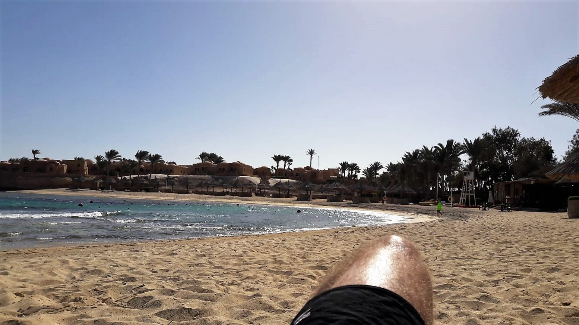 Strand in wunderschöner Bucht. Immer genug Liegen vorhanden. Sehr viel Platz.