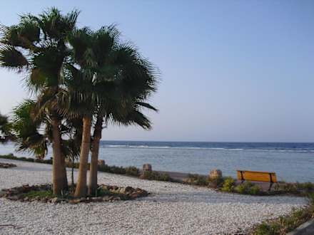 Von den hinteren Zimmergruppen geht man ca. 10 min am Meer zum Strand